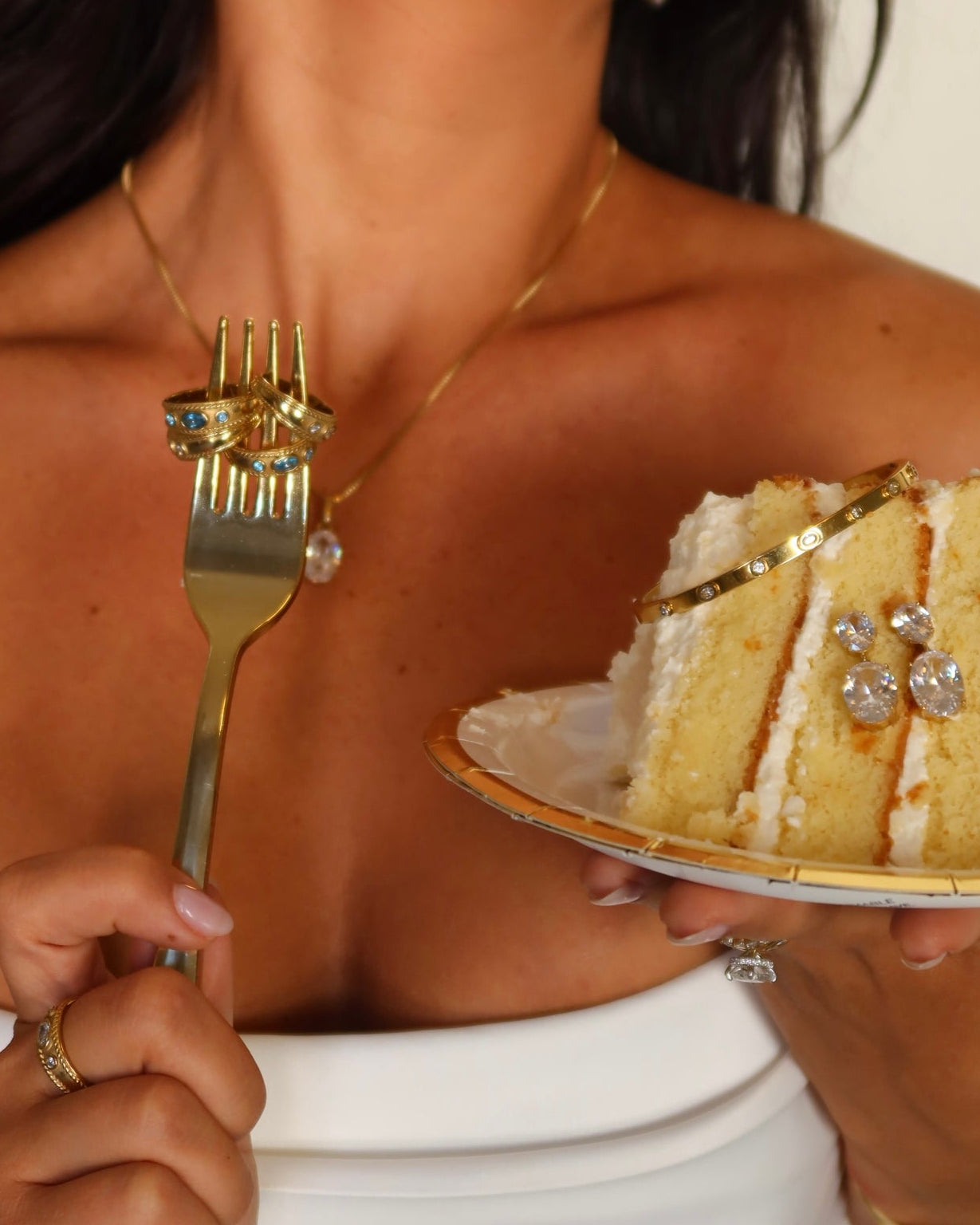 At Liv Bella Vita, we use 18k PVD gold coating — a waterproof, tarnish-resistant finish that lasts longer and shines brighter than traditional gold-plated or gold-filled jewelry. It’s our secret to creating pieces that glow with you, every single day.