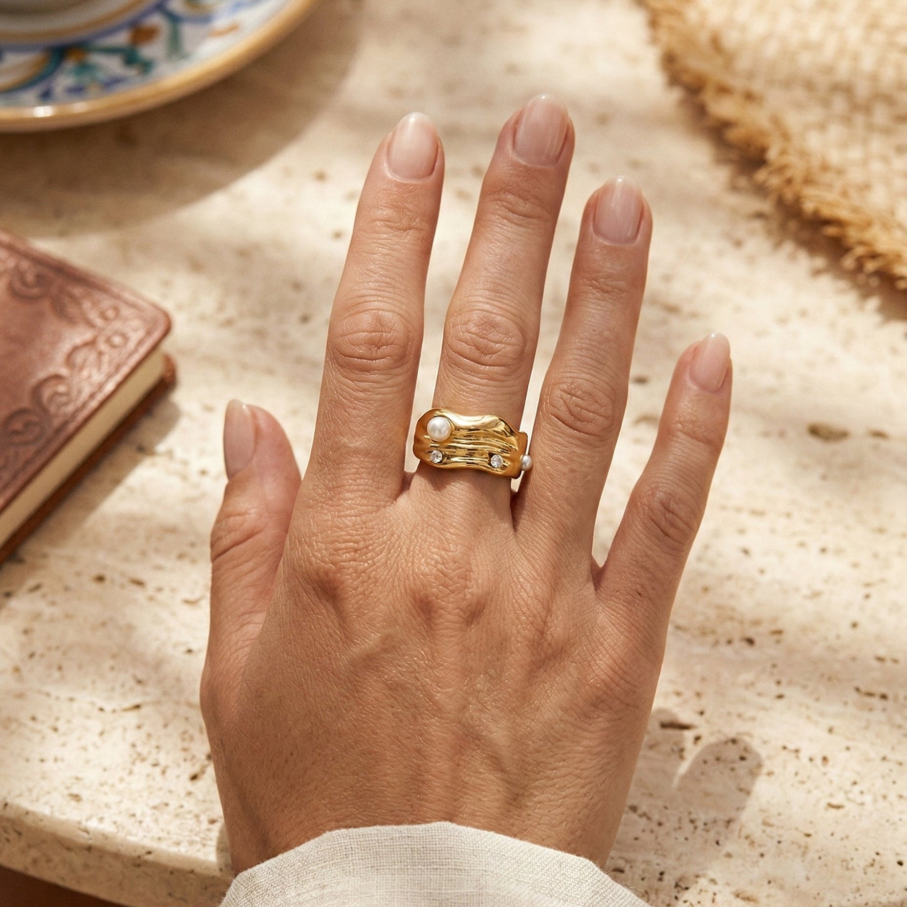 Penelope Pearl Zircon Ring