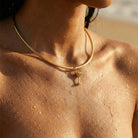 A Toast to the Good Life. Capture the essence of a European golden hour with The Apéritif Collar. Sleek yet spirited, this structured gold collar features a polished 4mm silhouette and a removable martini charm that brings whimsical luxury and versatile styling to your everyday look.