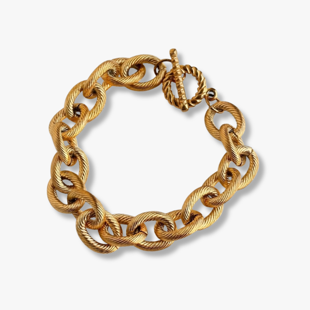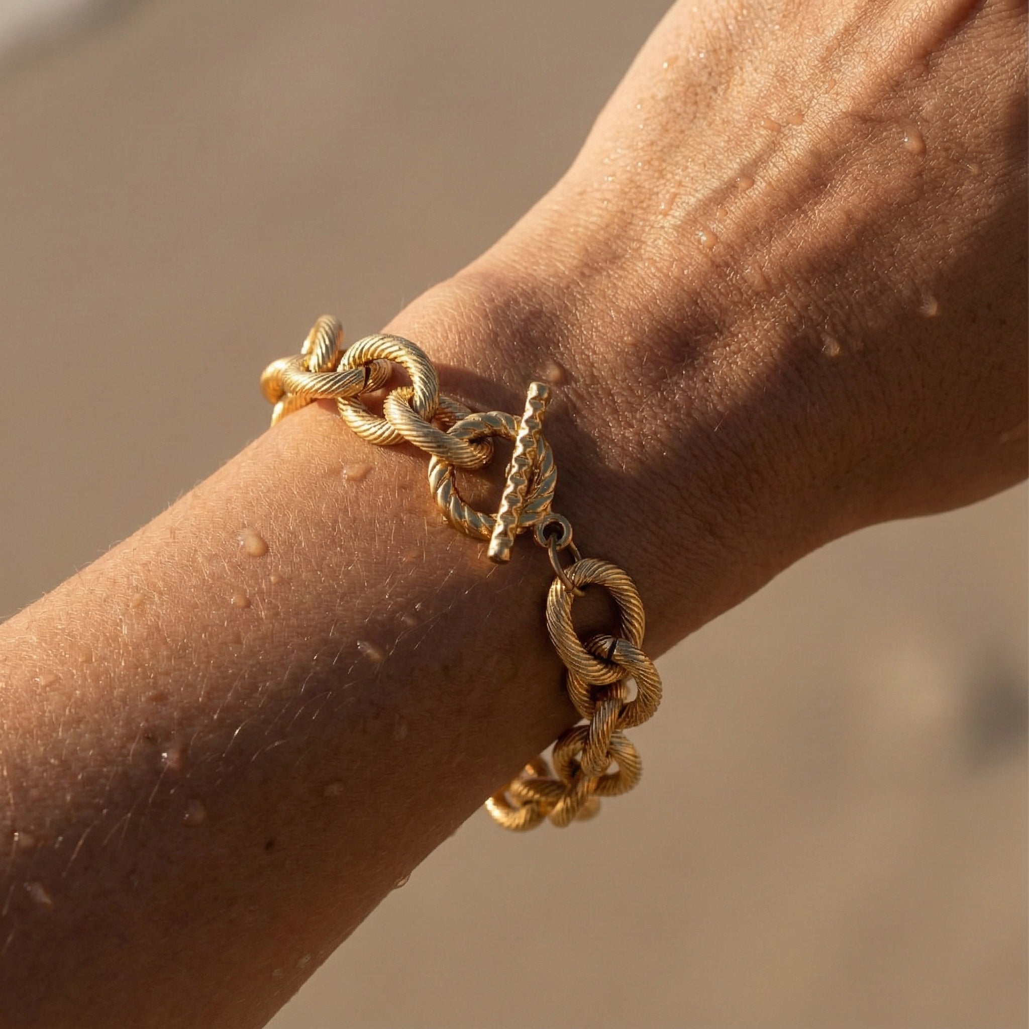 Design: Twisted rope links with textured toggle clasp