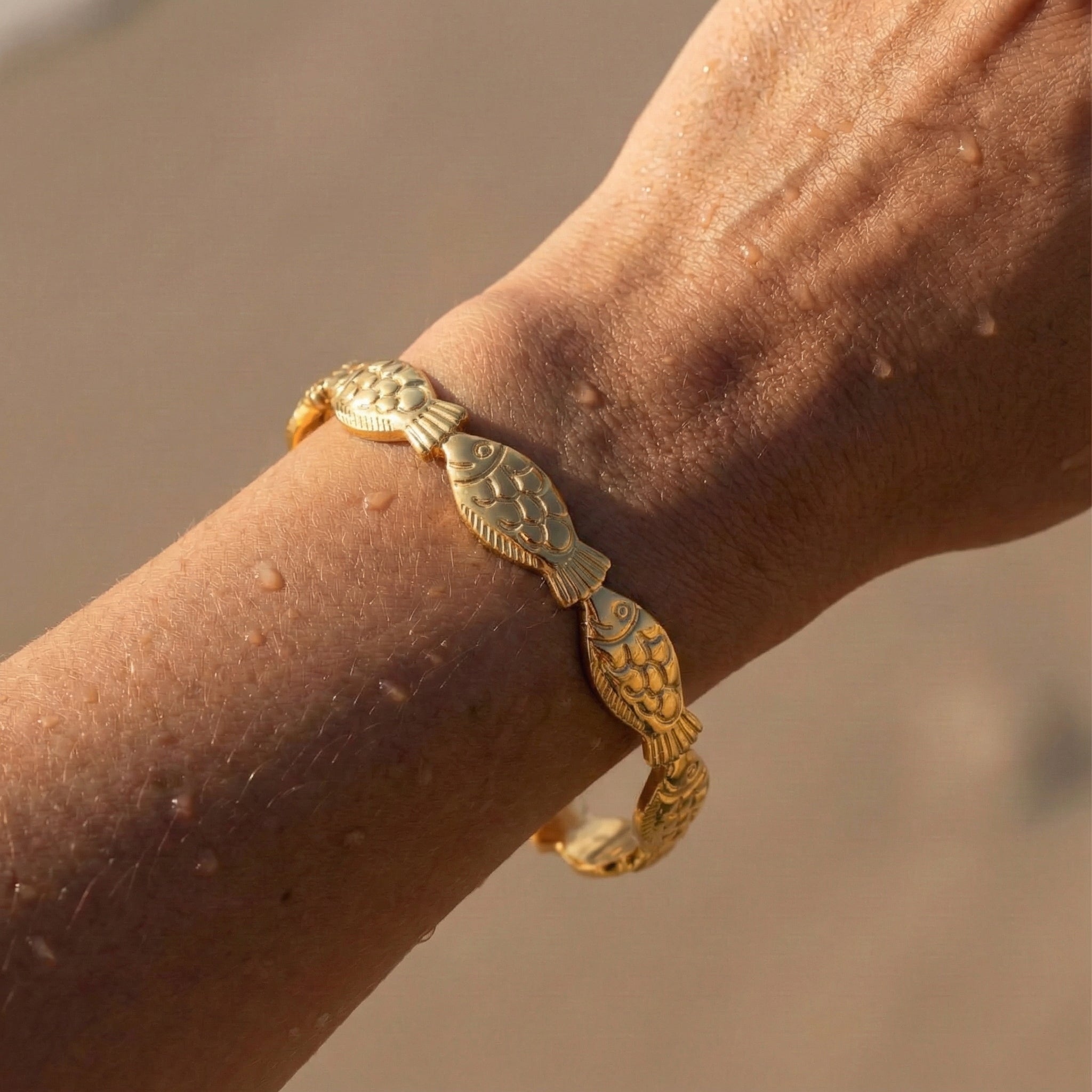 Our jewelry is crafted with 18k PVD gold over 316L stainless steel — a durable, waterproof, and hypoallergenic base made to shine through salt, sweat, and everyday wear. We never use brass, copper, or nickel, so your pieces stay radiant and irritation-free.