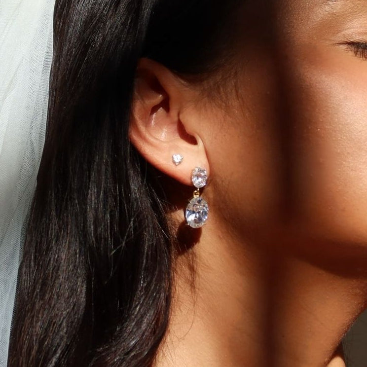 A timeless double-oval silhouette that elongates and sparkles with every movement. Featuring 7x9mm and 10x14mm natural zircon stones, the Riviera Drops deliver diamond-like brilliance in a lightweight design made for every occasion. Elegant yet effortless, they’re the kind of statement you can wear day-to-night—always polished, never too much.