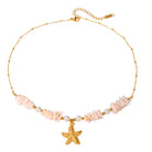 A dreamy blend of soft pastel pink beads and a delicate starfish charm, capturing the essence of coastal charm. Adjustable from 16” to 18” for the perfect fit.
