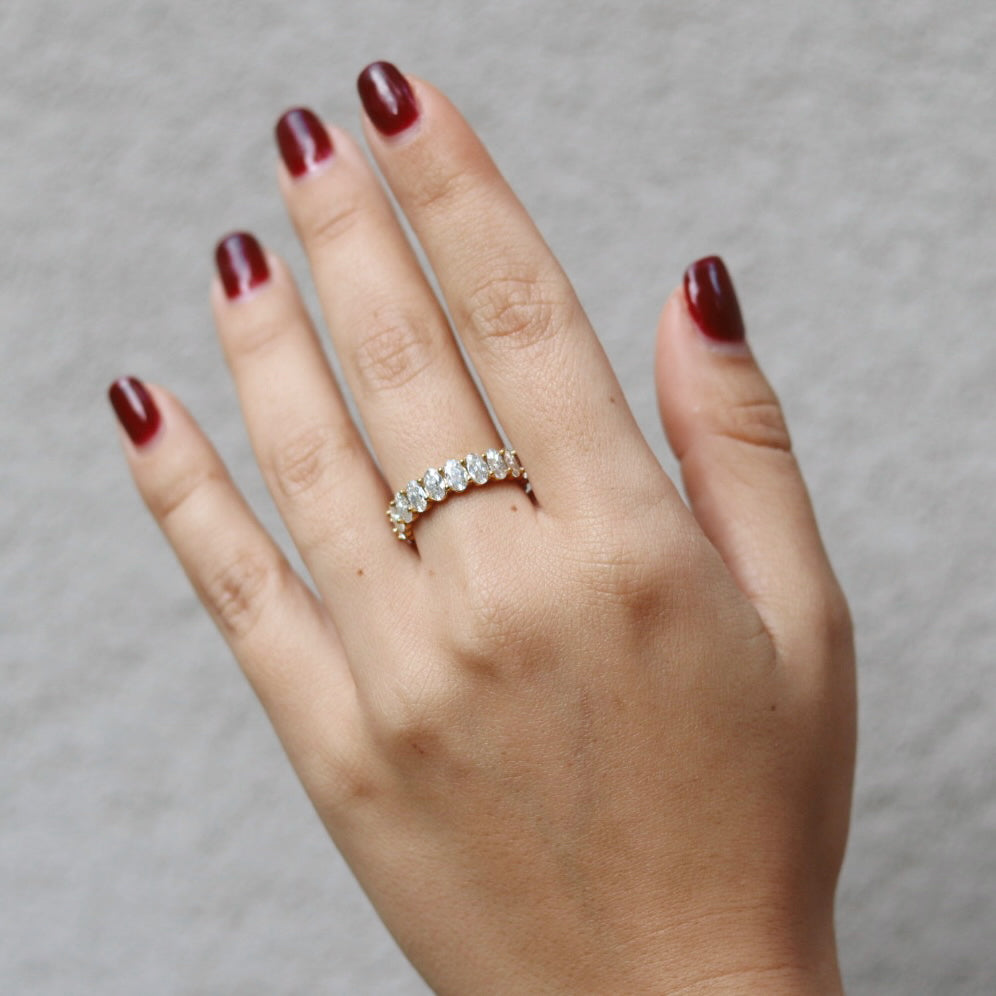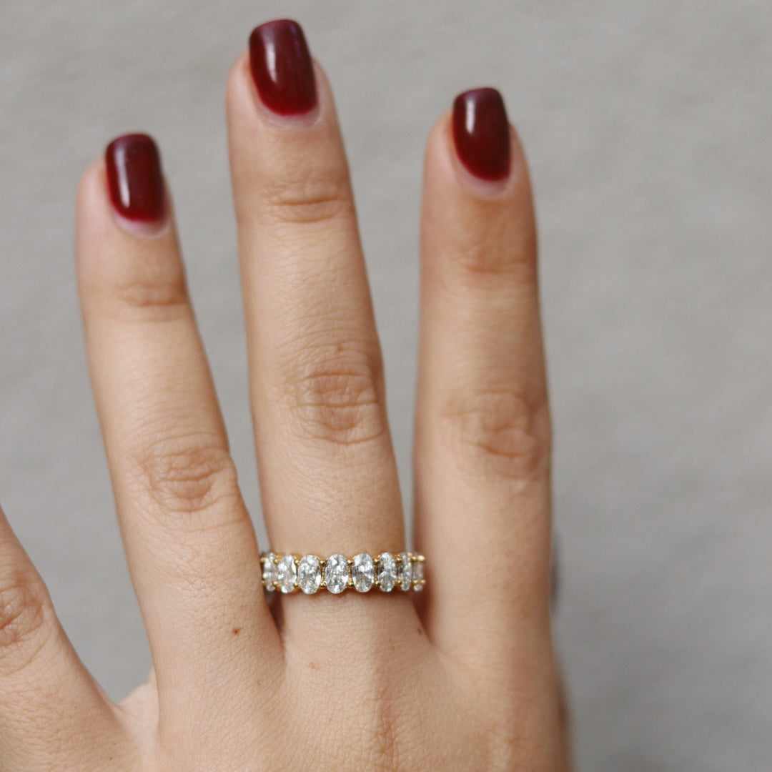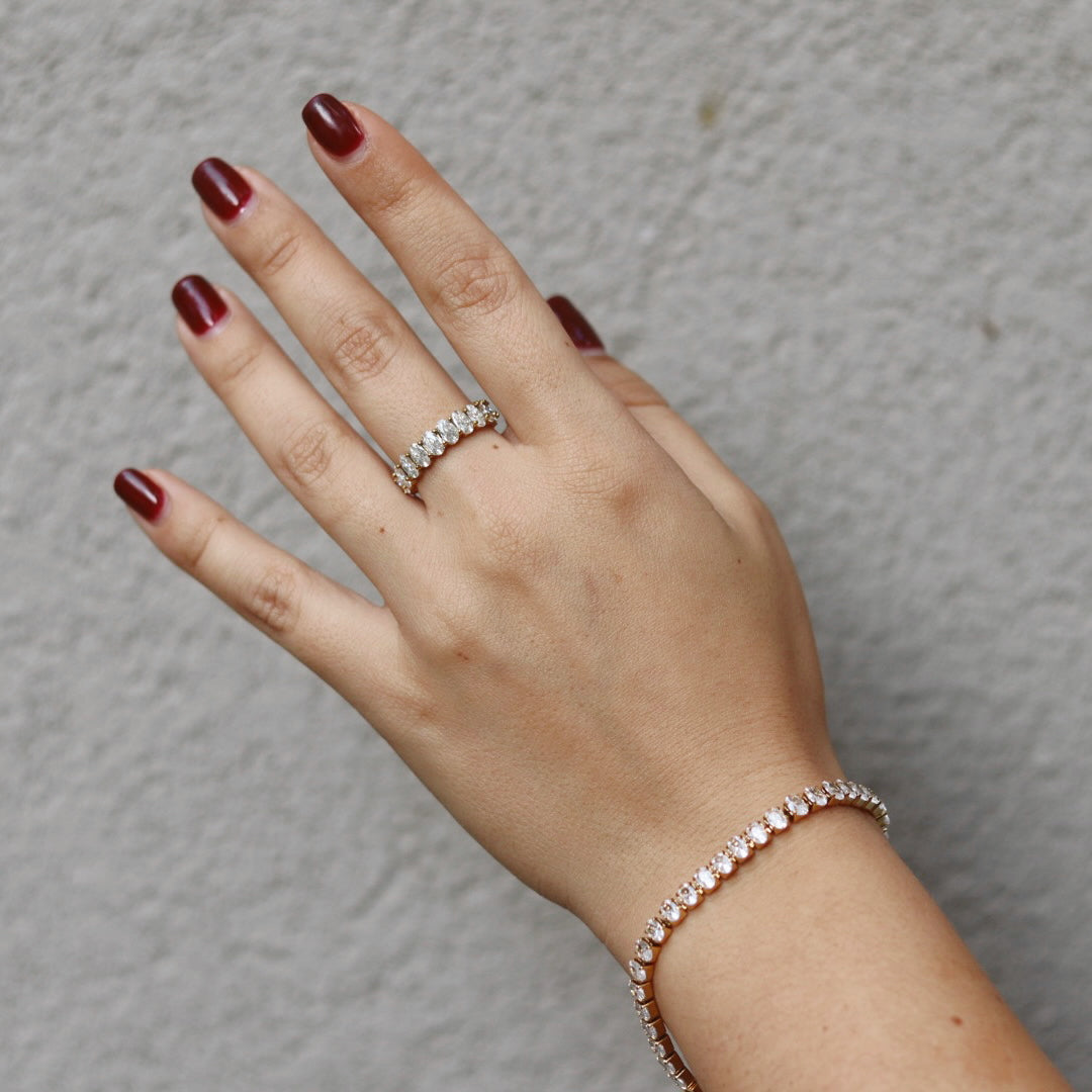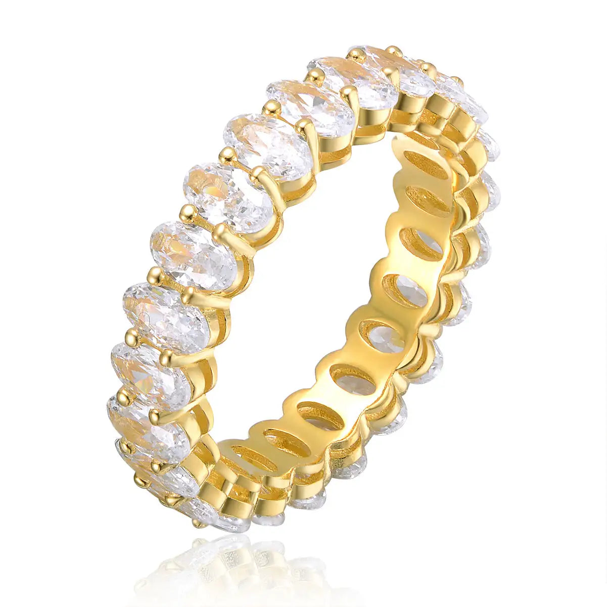 The Astrid Diamond Oval Zircon Eternity Ring is a stunning piece of jewelry that exudes elegance and sophistication. Featuring a continuous band of sparkling oval-cut zirconia stones, this ring is a symbol of eternal beauty and style. Crafted with hypoallergenic and waterproof materials, it's both luxurious and practical.