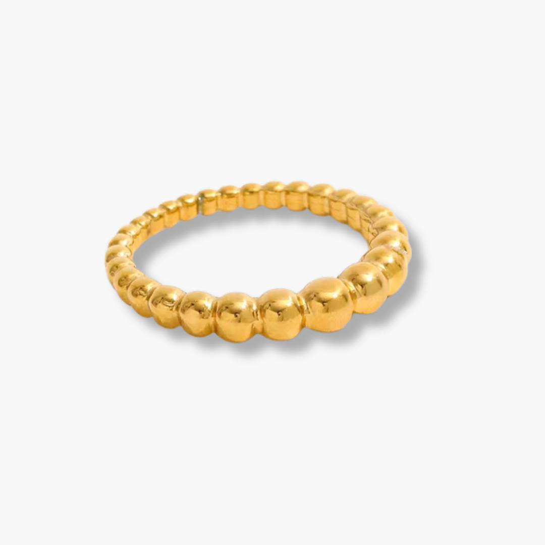 Classic yet playful, the Beatriz Ring adds a touch of effortless charm to your everyday style. Its polished beaded design brings texture and warmth, perfect for stacking or wearing solo for a hint of golden glow. A modern staple with timeless appeal.