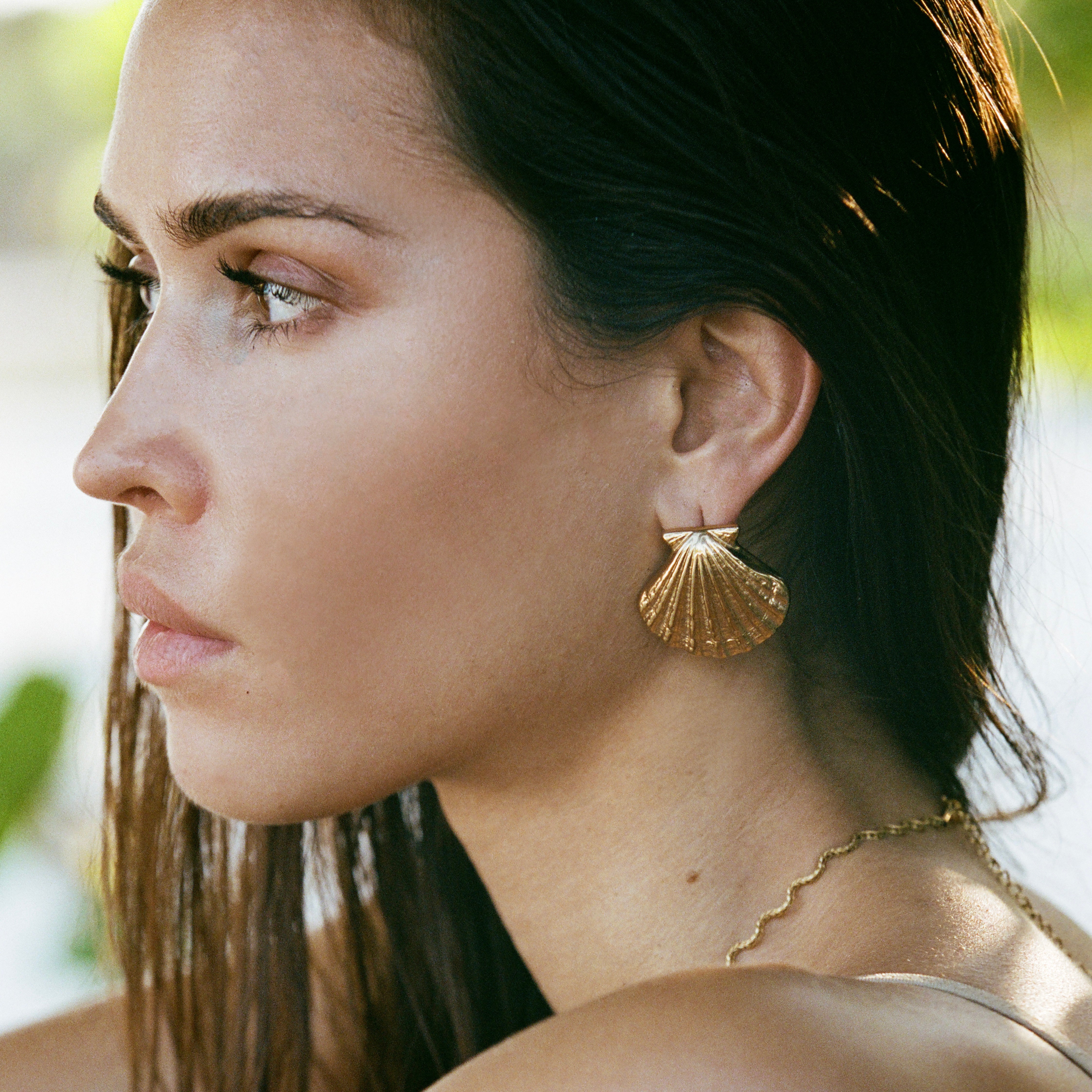 Timeless and sun-kissed, the Conchessa studs bring a touch of coastal elegance to your everyday. Sculpted into golden shell silhouettes, they echo the treasures found along the shore—polished by the sea and made to glow. Lightweight yet statement-worthy, they’re the perfect finish for windswept hair, linen dresses, and days that drift into dusk.
