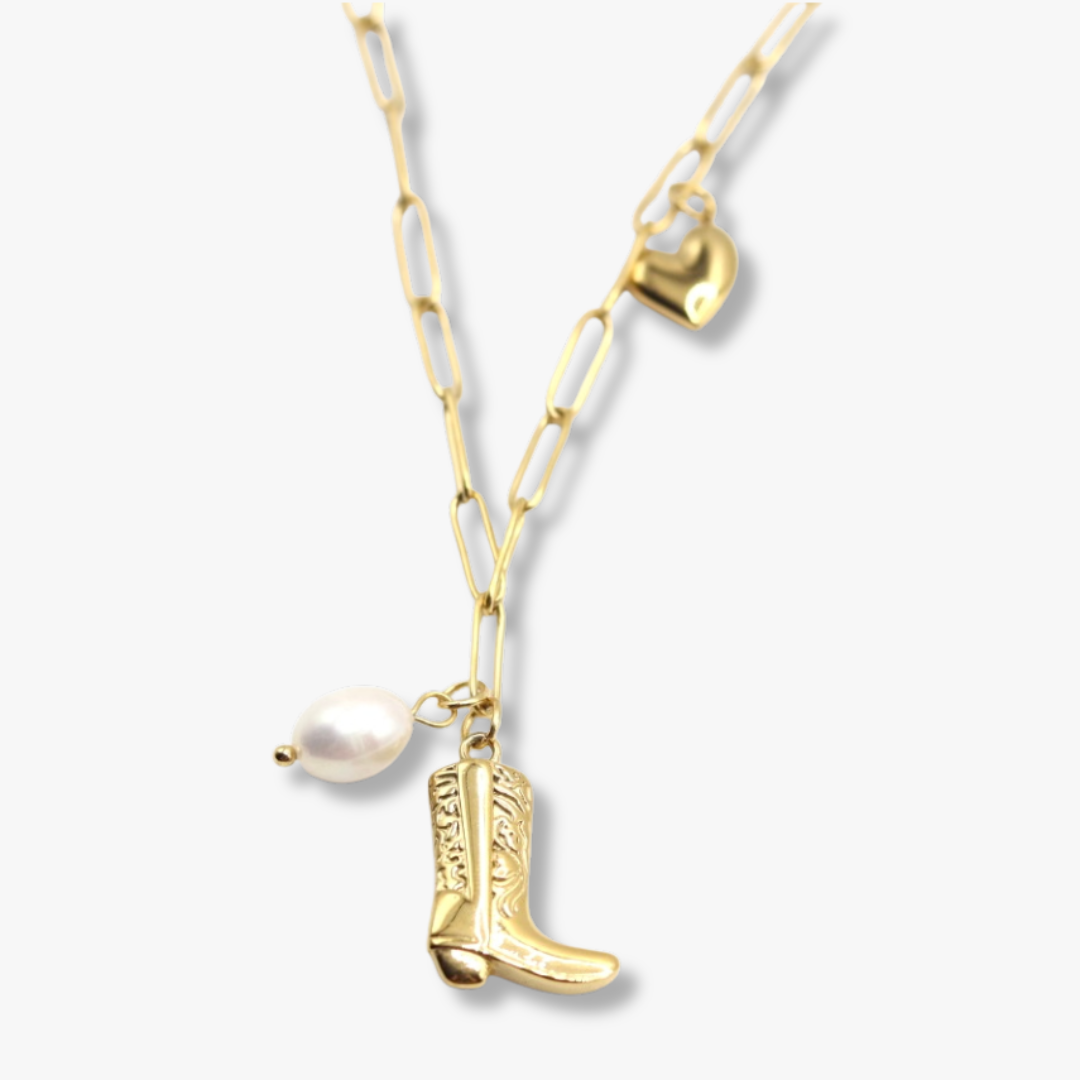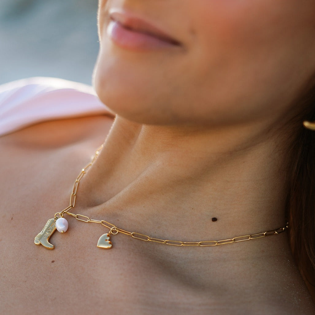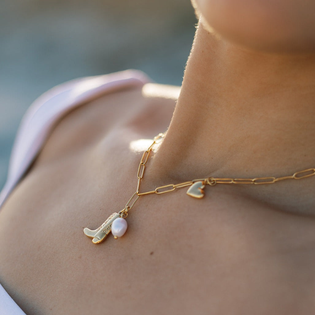 Perle Cowgirl Boot Paperclip Charm Necklace