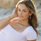 Our jewelry is crafted with 18k PVD gold over 316L stainless steel — a durable, waterproof, and hypoallergenic base made to shine through salt, sweat, and everyday wear. We never use brass, copper, or nickel, so your pieces stay radiant and irritation-free.