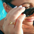 Our jewelry is crafted with 18k PVD gold over 316L stainless steel — a durable, waterproof, and hypoallergenic base made to shine through salt, sweat, and everyday wear. We never use brass, copper, or nickel, so your pieces stay radiant and irritation-free.