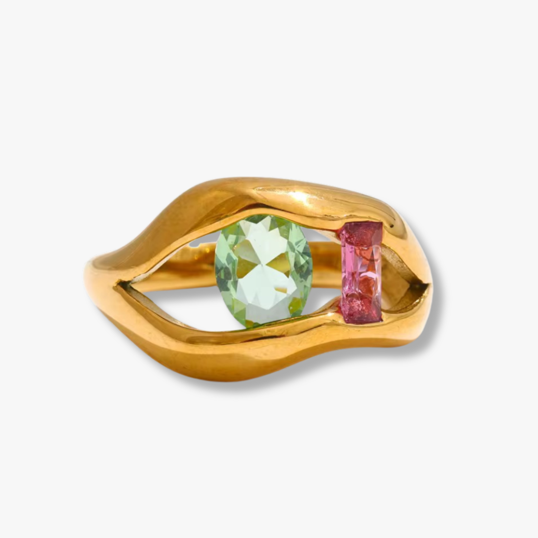 Crafted from PVD-sealed 18K gold over 316L stainless steel, the Maja Ring is waterproof, hypoallergenic, and tarnish-free, designed to bring a touch of color and luxury to your everyday.