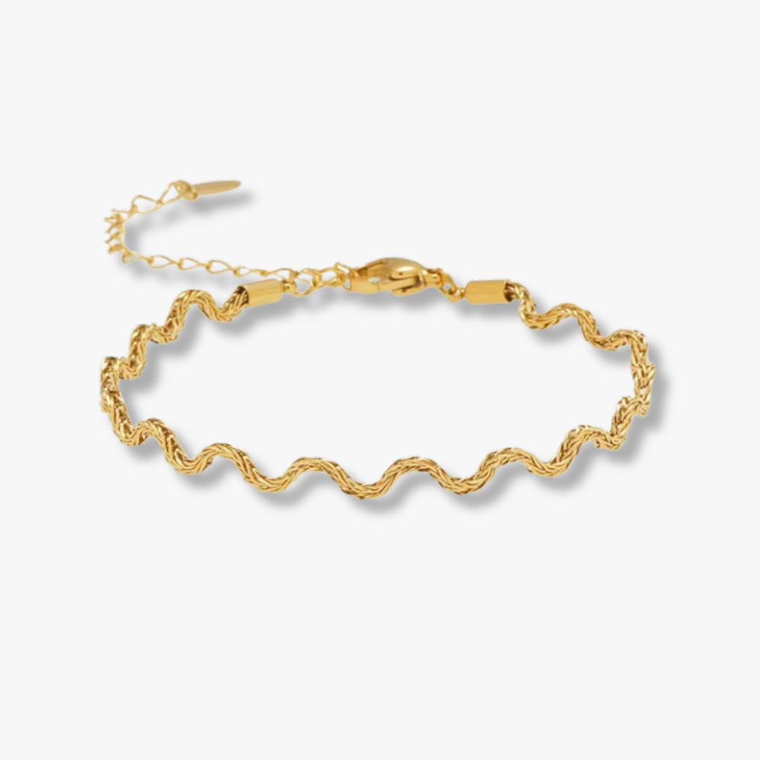 Delicate, fluid, and inspired by the movement of the sea, the Odina Wave Bracelet brings a touch of effortless coastal elegance to the wrist. Its twisted wave silhouette catches the light with every turn, making it the perfect everyday layering piece—minimal, feminine, and timeless.