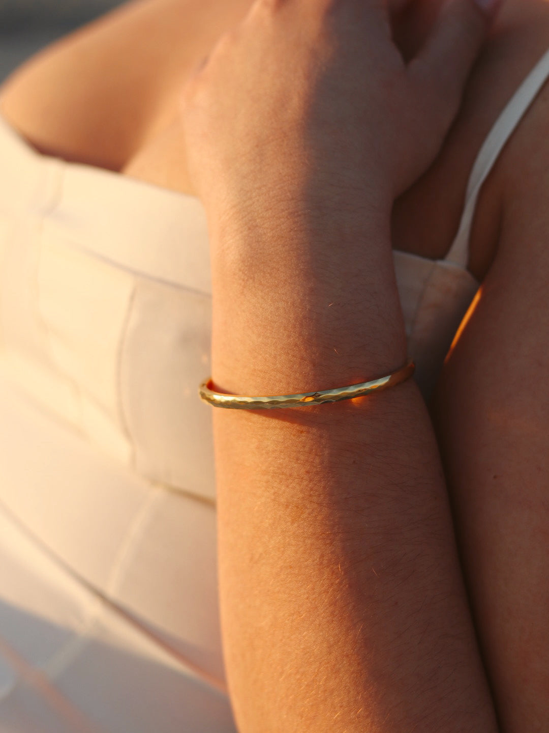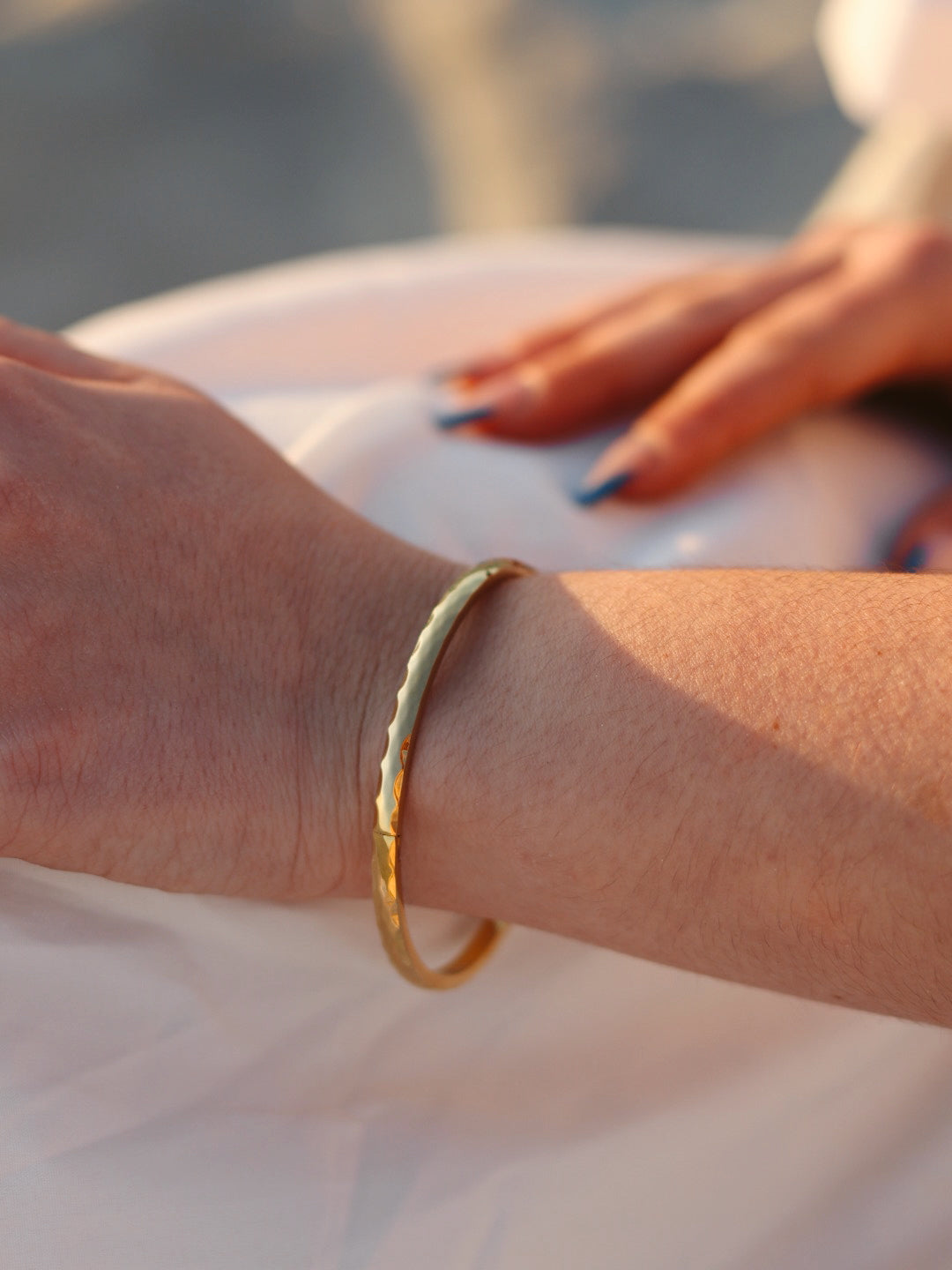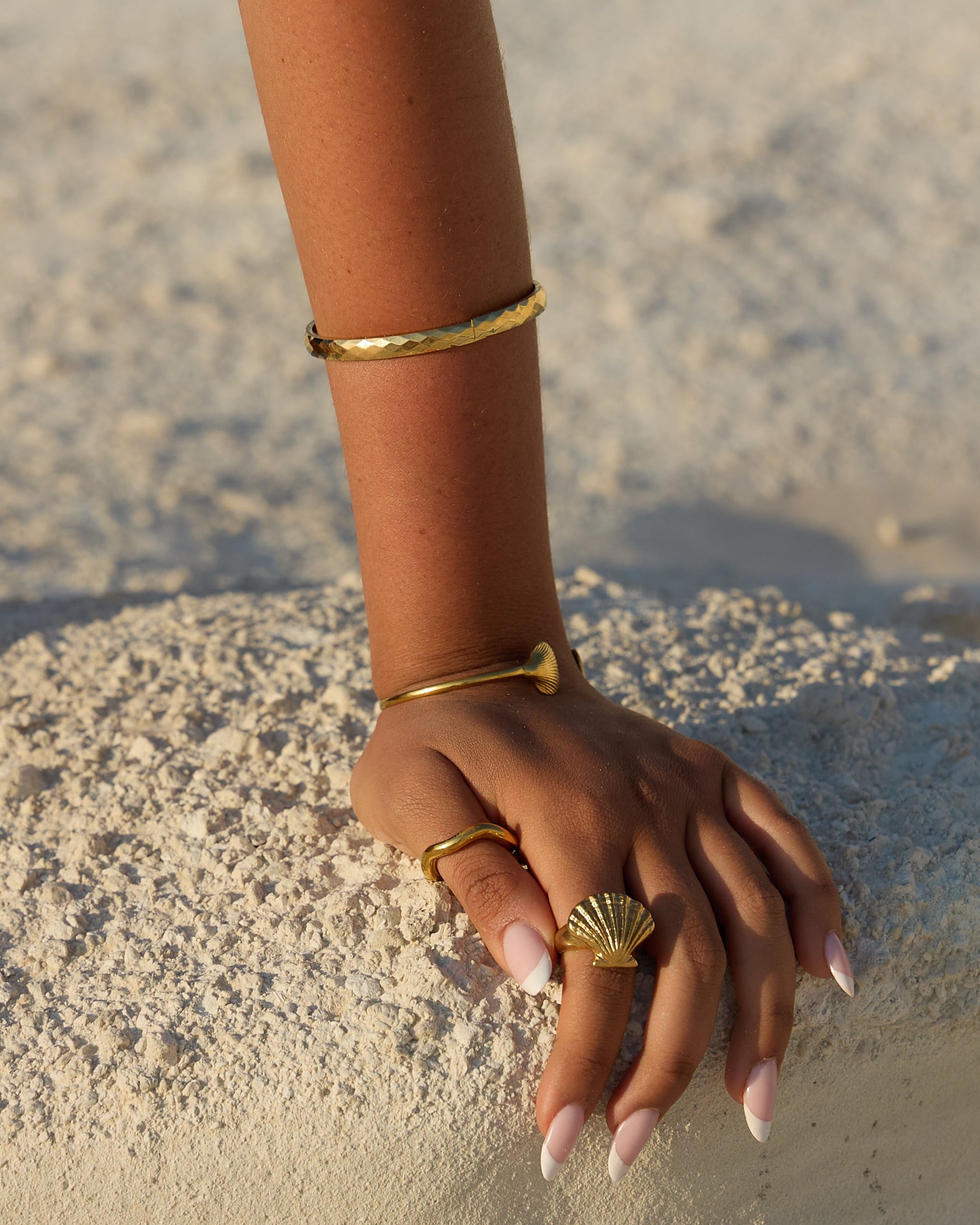 Our jewelry is crafted with 18k PVD gold over 316L stainless steel — a durable, waterproof, and hypoallergenic base made to shine through salt, sweat, and everyday wear. We never use brass, copper, or nickel, so your pieces stay radiant and irritation-free.