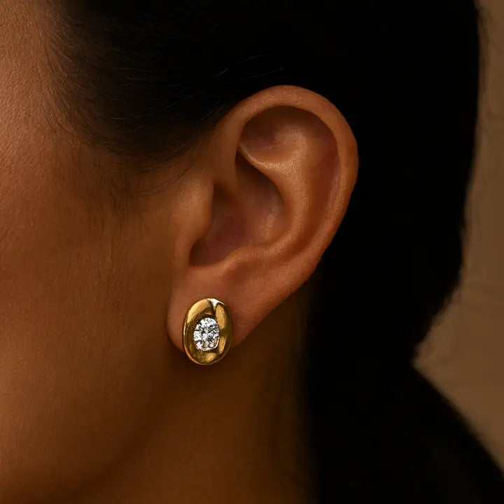 Timeless and radiant, our Valentina Oval Abstract Stud Earrings bring an artful twist to classic elegance. Featuring a graceful 10mm x 14mm oval silhouette, each shimmering diamond zircon is cut to catch the light from every angle, creating a look that’s both refined and unforgettable.