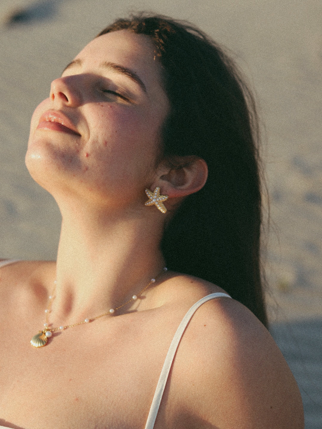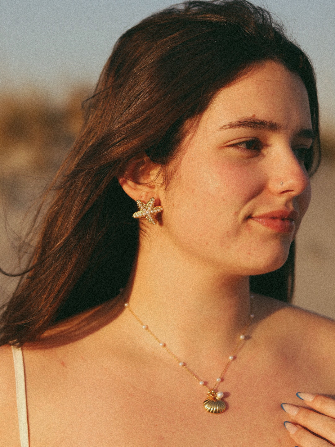A little sparkle, a little sea magic. The Pearlina Pearl Starfish Studs blend luminous freshwater pearls with delicate starfish details for a look that’s equal parts coastal and classic. Tiny enough for every day, yet special enough to stand out—these studs bring a soft shimmer wherever the tide takes you.