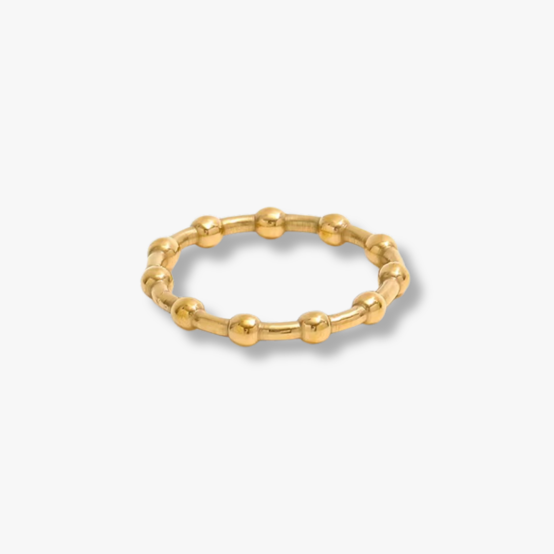 Delicate and endlessly wearable, the Sylvie Ring is a golden essential that adds a touch of quiet luxury to every look. Its beaded silhouette brings texture and charm, whether worn solo for subtle shine or stacked to create your own signature style. Effortless, feminine, and made to last.