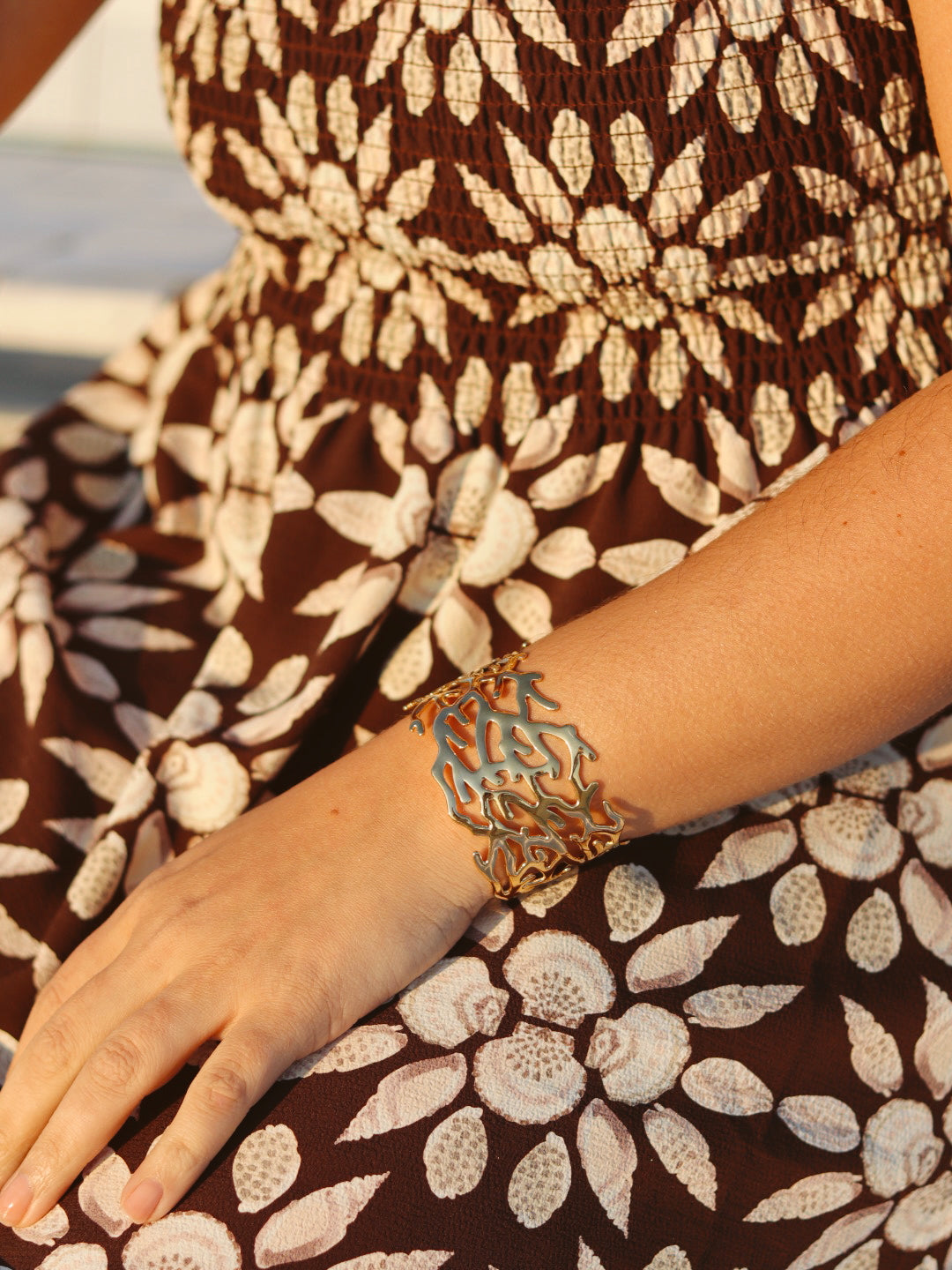 Bold yet effortless, this coral-inspired cuff wraps your wrist in ocean elegance. A statement piece for every sun-kissed adventure.