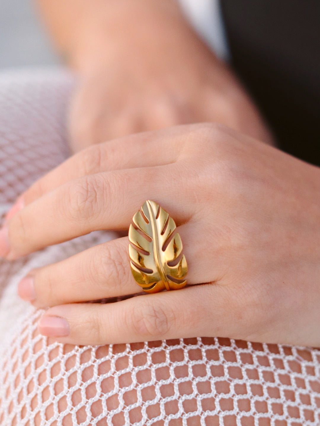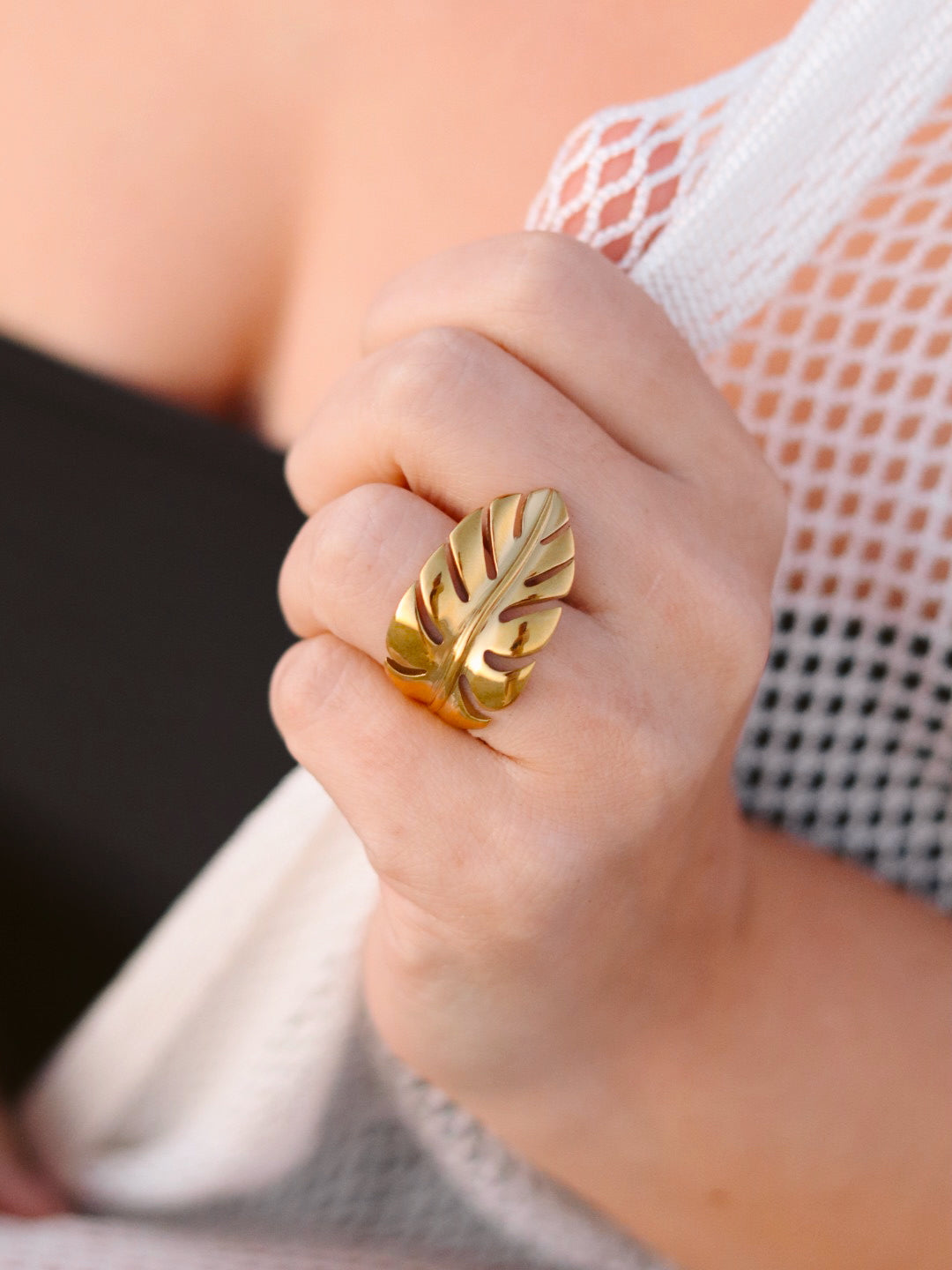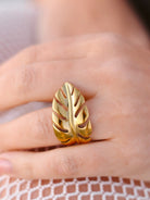 A touch of the tropics at your fingertips. This elegant palm leaf ring wraps around your finger with effortless island charm.