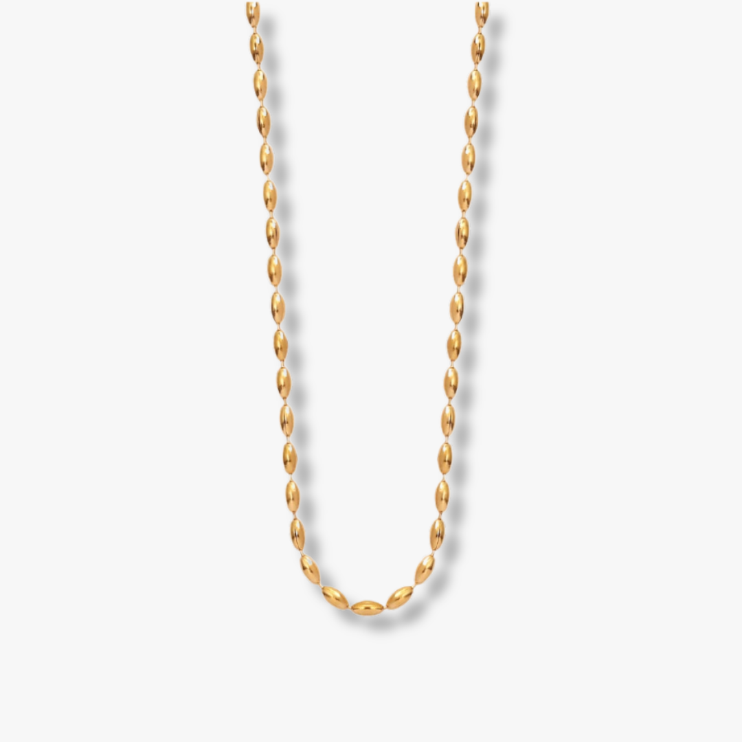 Delicate, effortless, and endlessly wearable, this gold beaded chain is the kind of everyday staple that instantly elevates any neckline. Designed to sit perfectly at the collarbone, it’s stunning worn solo for a clean, minimal look — or layered with your favorite pendants for a golden stack.