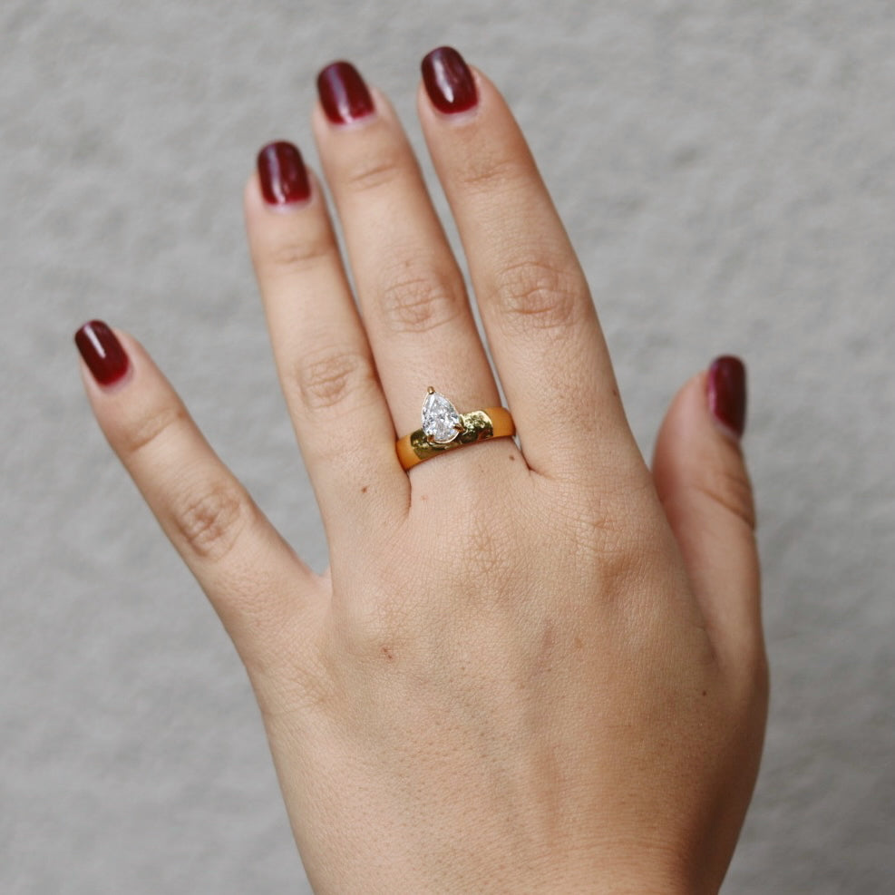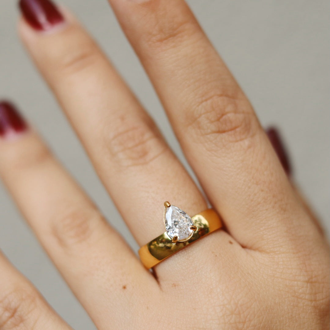 The Noora Diamond Zircon Teardrop Ring captures timeless elegance in a refined, minimalist silhouette. Featuring a delicate teardrop-shaped zircon set in a classic solitaire design, it delivers effortless sparkle with a modern, wearable feel—perfect for everyday styling or elevated moments.