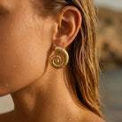 Make a bold, beach-inspired statement with these oversized conch shell stud earrings. Intricately detailed and finished in radiant gold, they capture the effortless elegance of seaside style while still feeling elevated enough for dinner, events, and vacation nights.