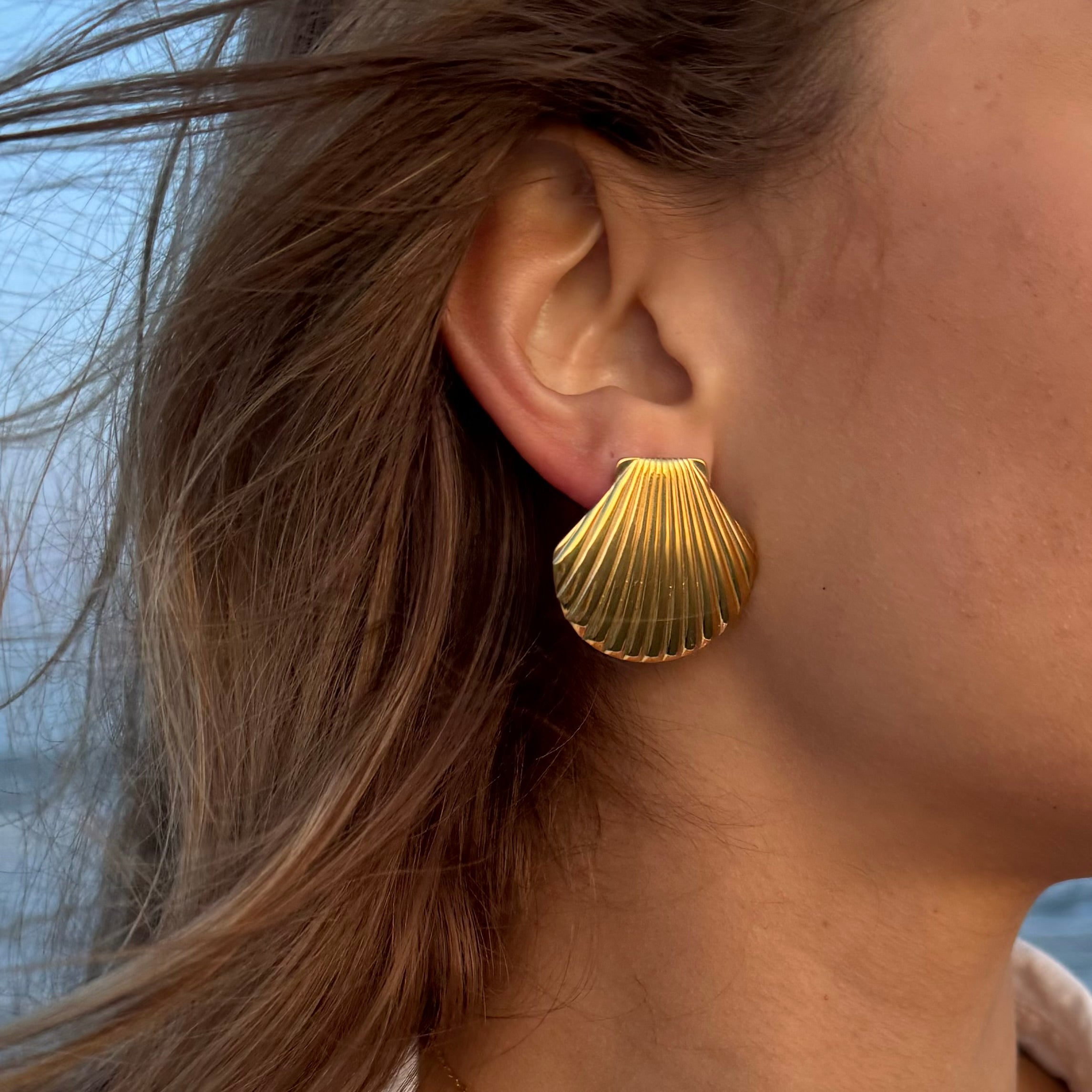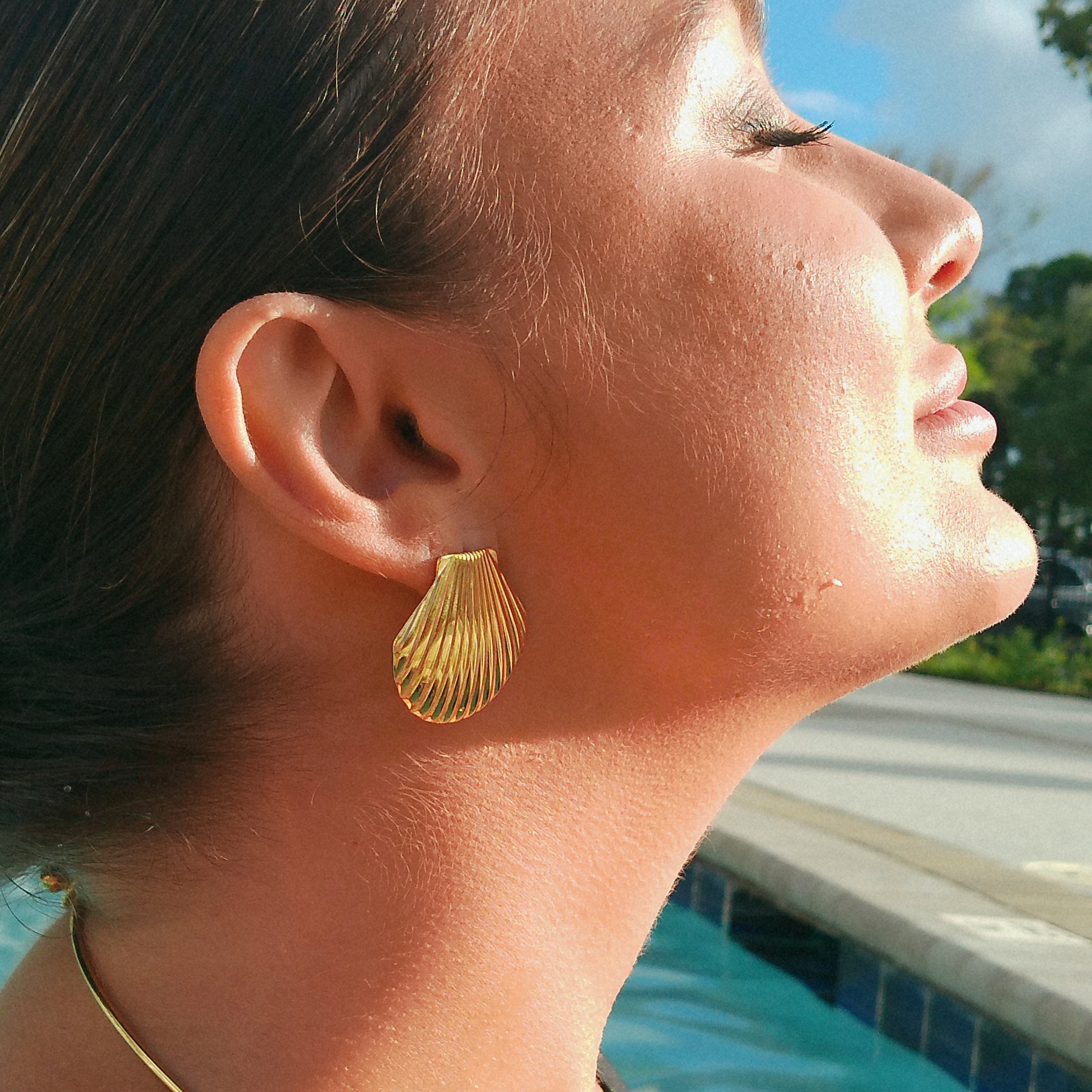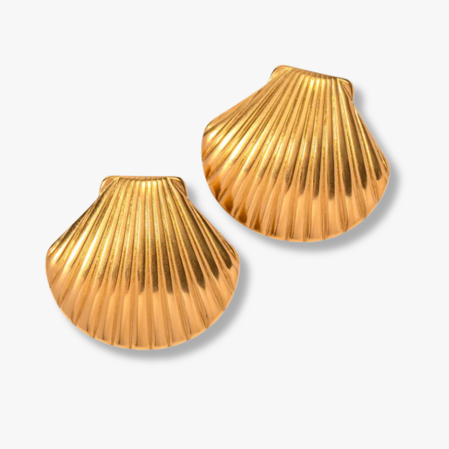 Make waves with the Delphine Shell Stud Earrings, a sculptural take on coastal elegance inspired by the natural beauty of seashells. Finished in waterproof gold, these statement studs bring effortless oceanic charm to everyday styling.