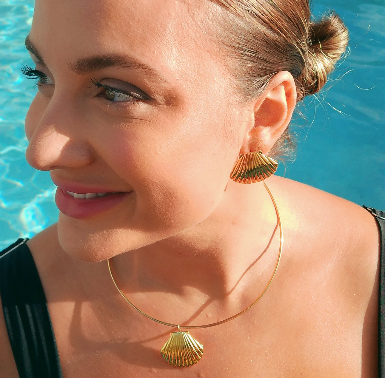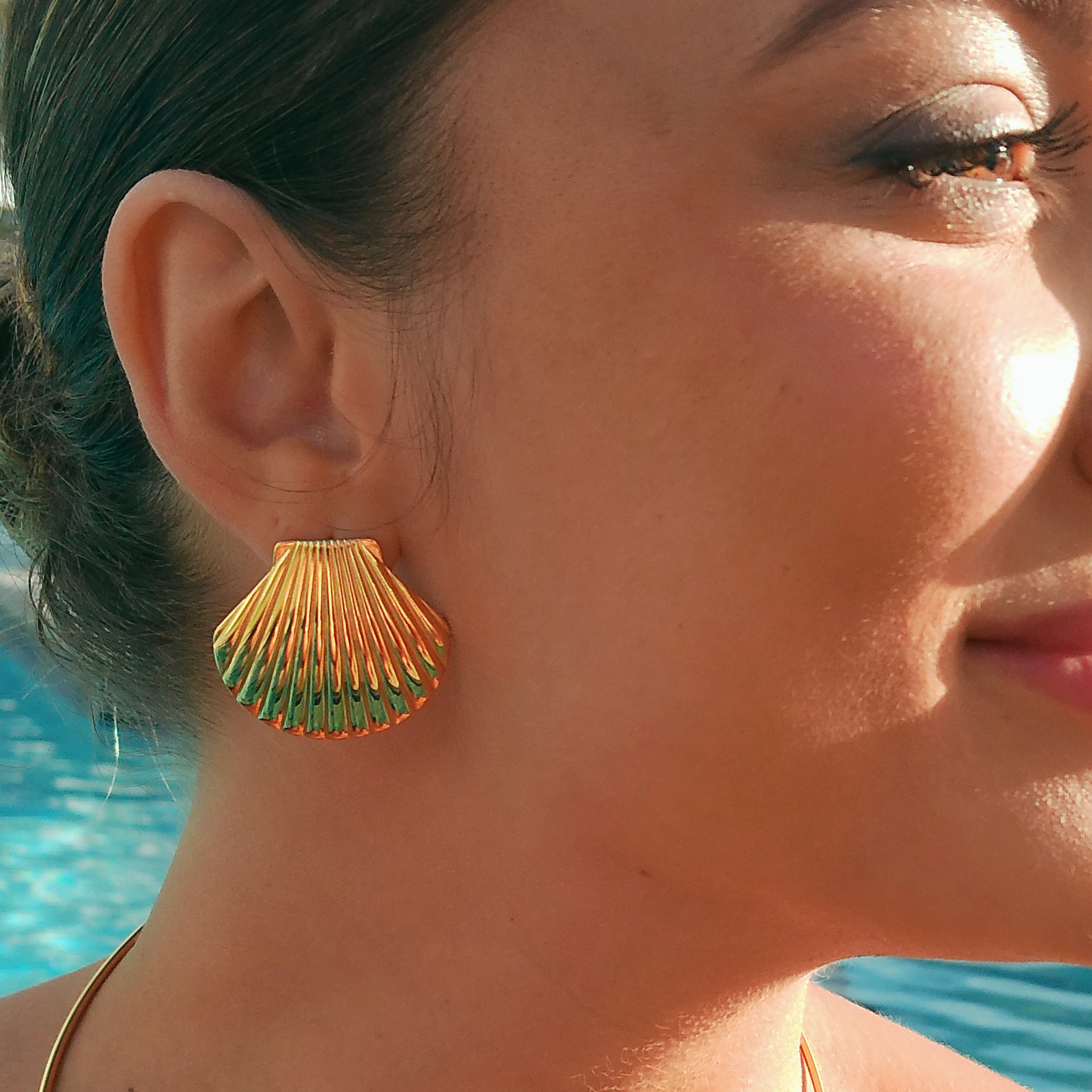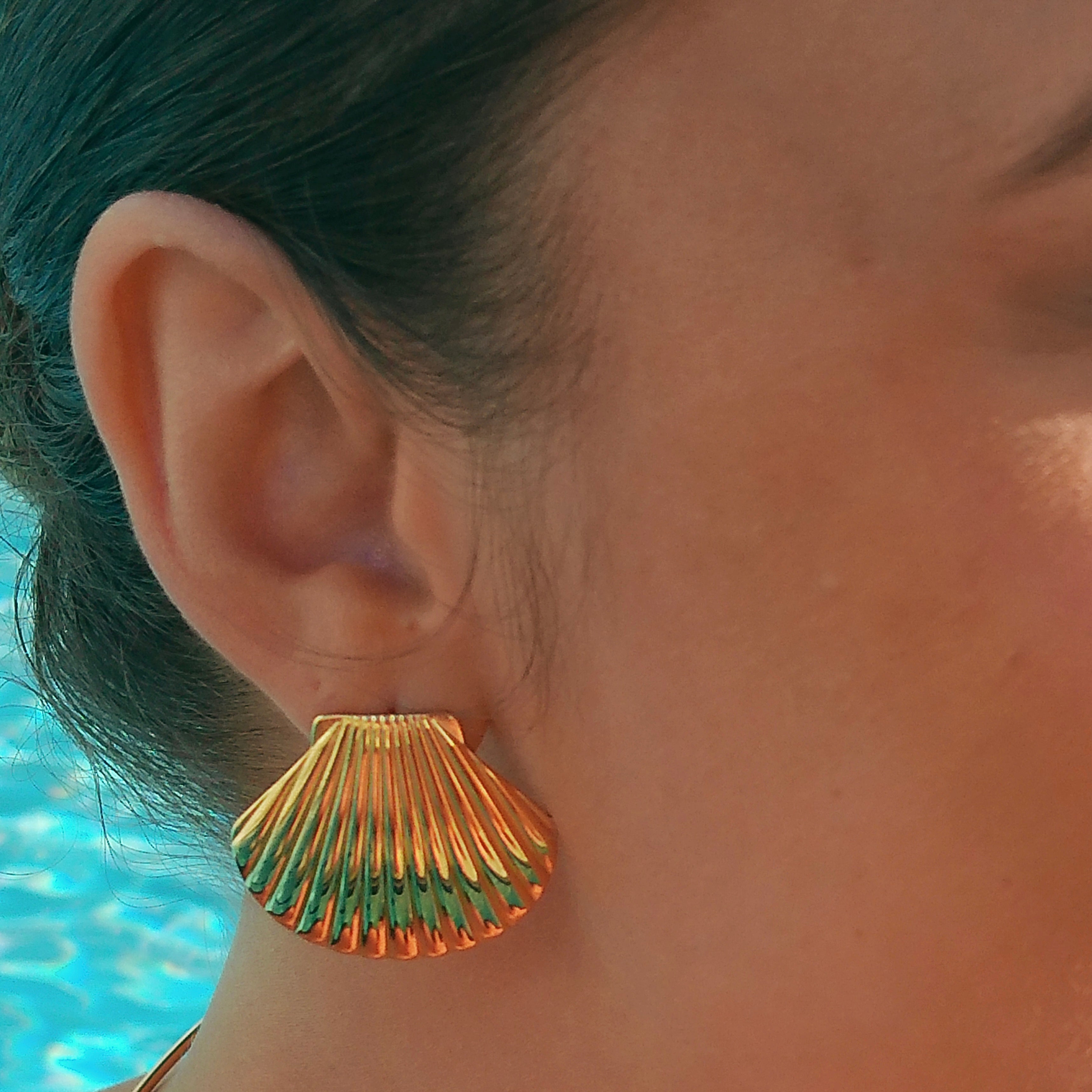 Make waves with the Delphine Shell Stud Earrings, a sculptural take on coastal elegance inspired by the natural beauty of seashells. Finished in waterproof gold, these statement studs bring effortless oceanic charm to everyday styling.