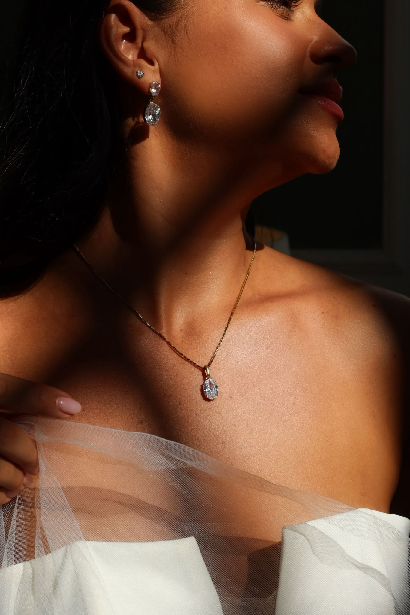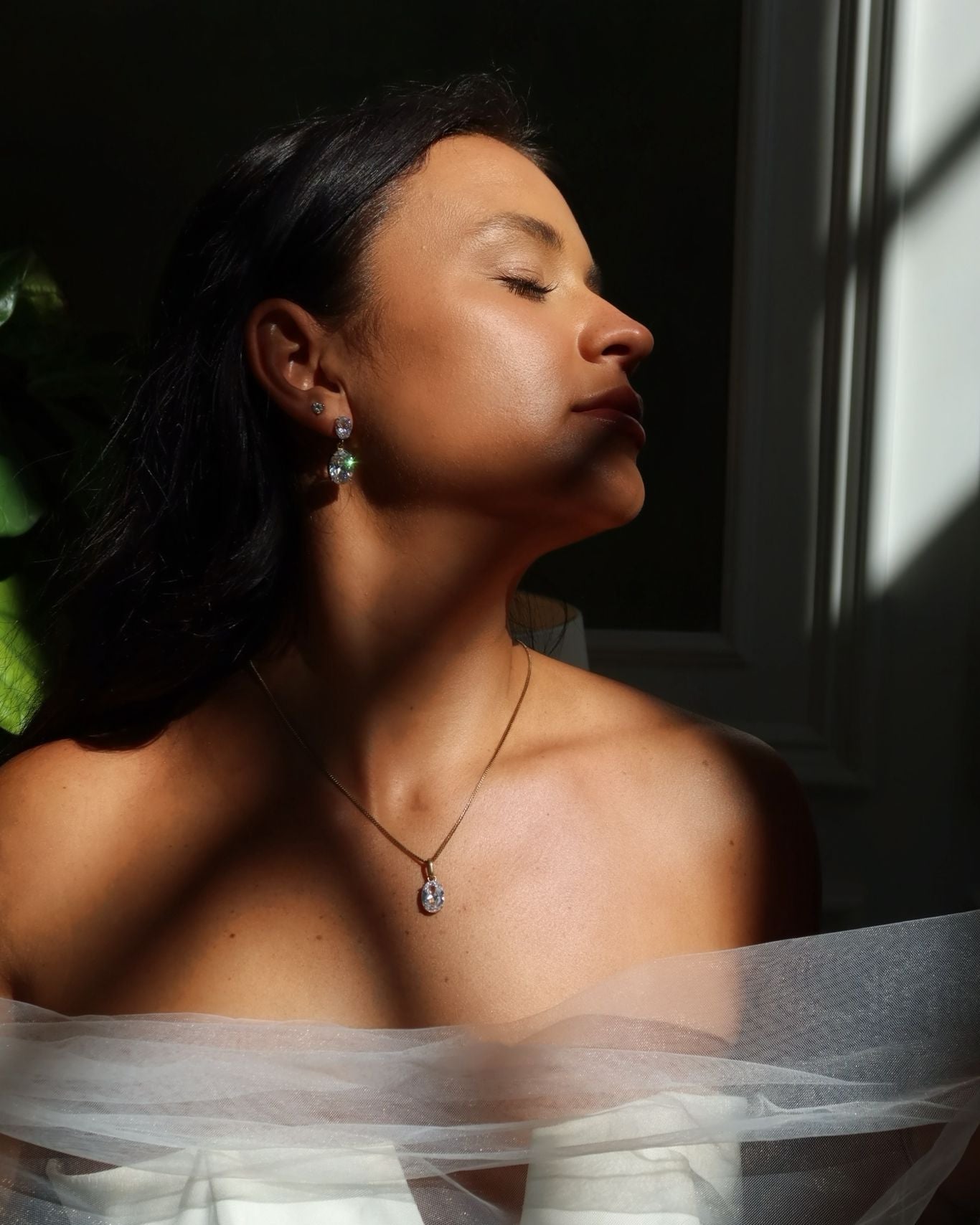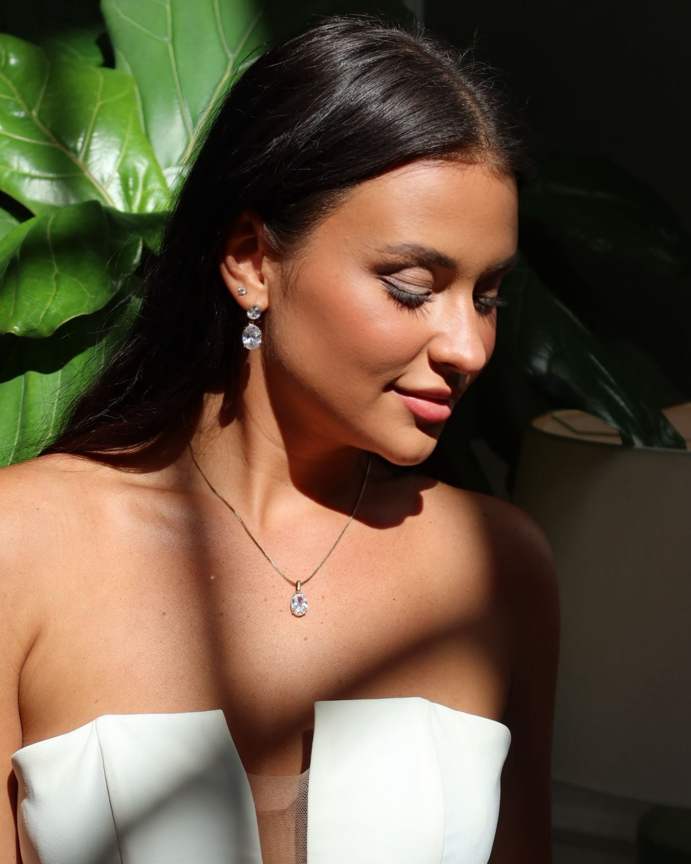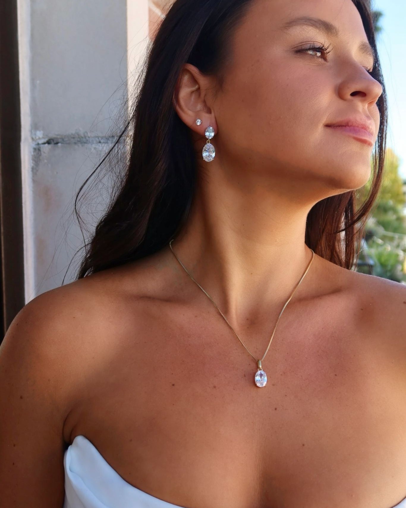 A timeless double-oval silhouette that elongates and sparkles with every movement. Featuring 7x9mm and 10x14mm natural zircon stones, the Riviera Drops offer diamond-like brilliance in a lightweight, tarnish-free design made for every occasion.