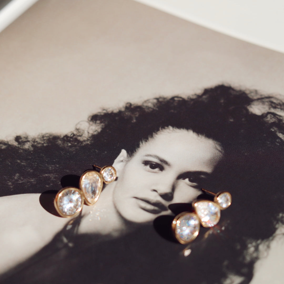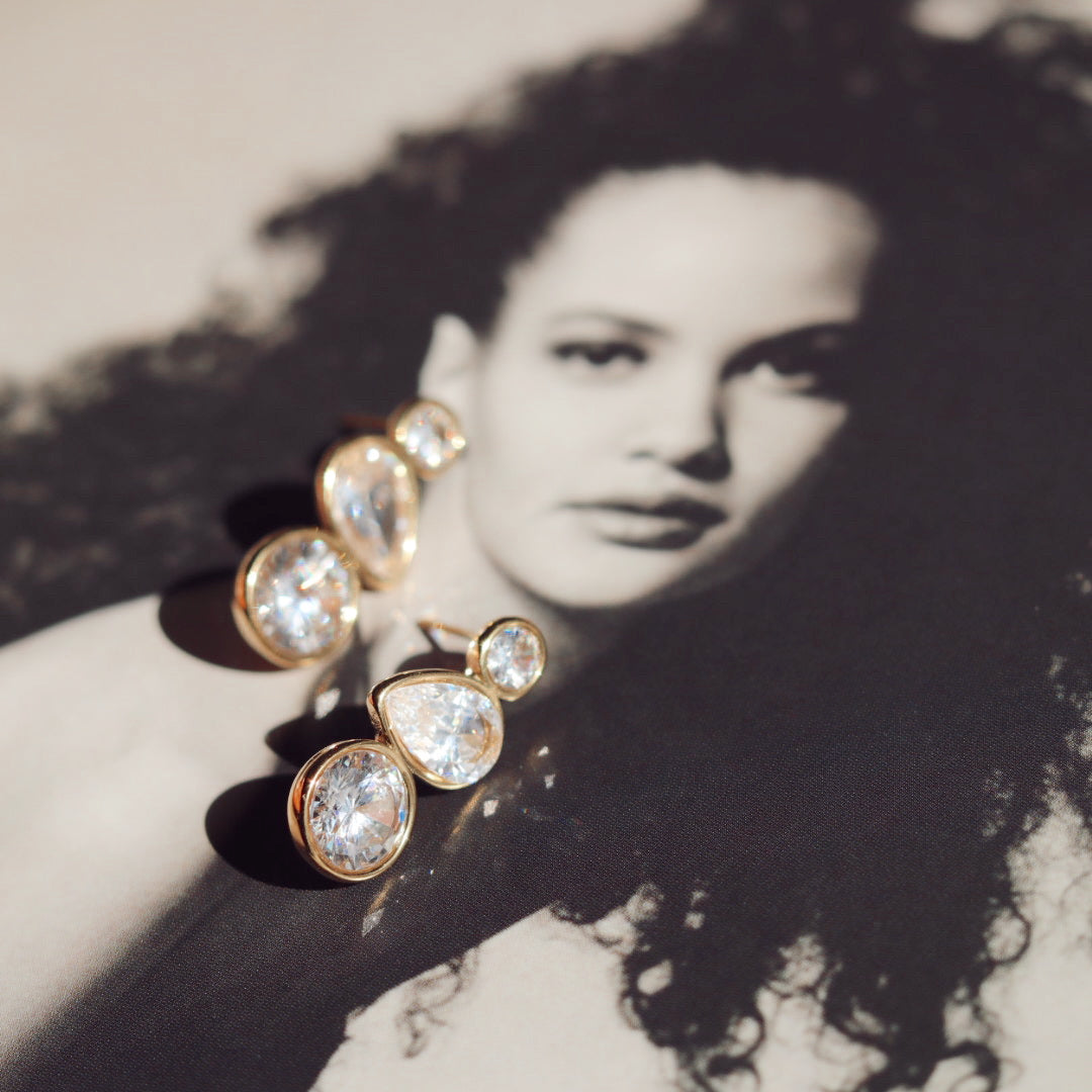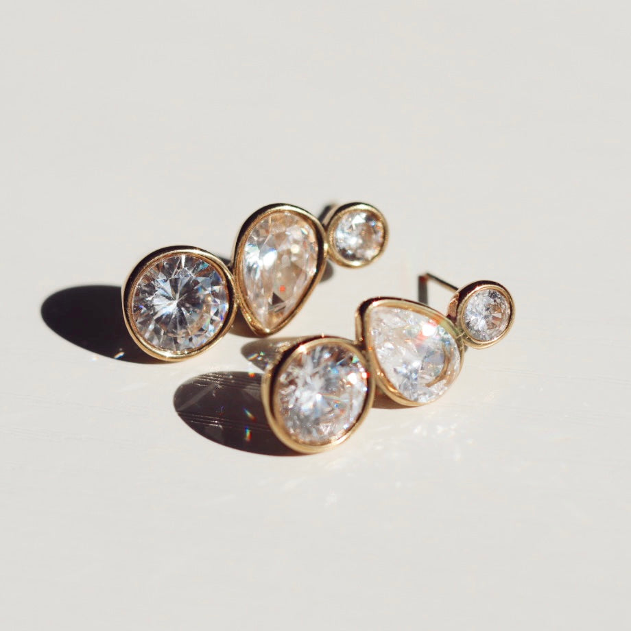 The combination of the diamond zircons' brilliance and the elegant drop shape creates a captivating and feminine look. Perfect for adding a touch of glamour to any outfit, these earrings are a versatile and stylish accessory.