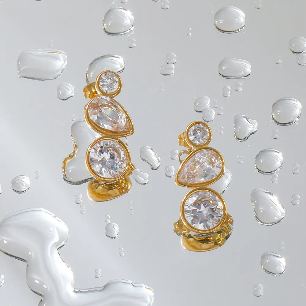 Made with Zircon, the underrated gem. This naturally occurring stone, often mistaken for its synthetic counterpart, cubic zirconia, is known for its exceptional brilliance and durability. It’s the perfect choice for our waterproof jewelry, offering a timeless sparkle without the hefty price tag.