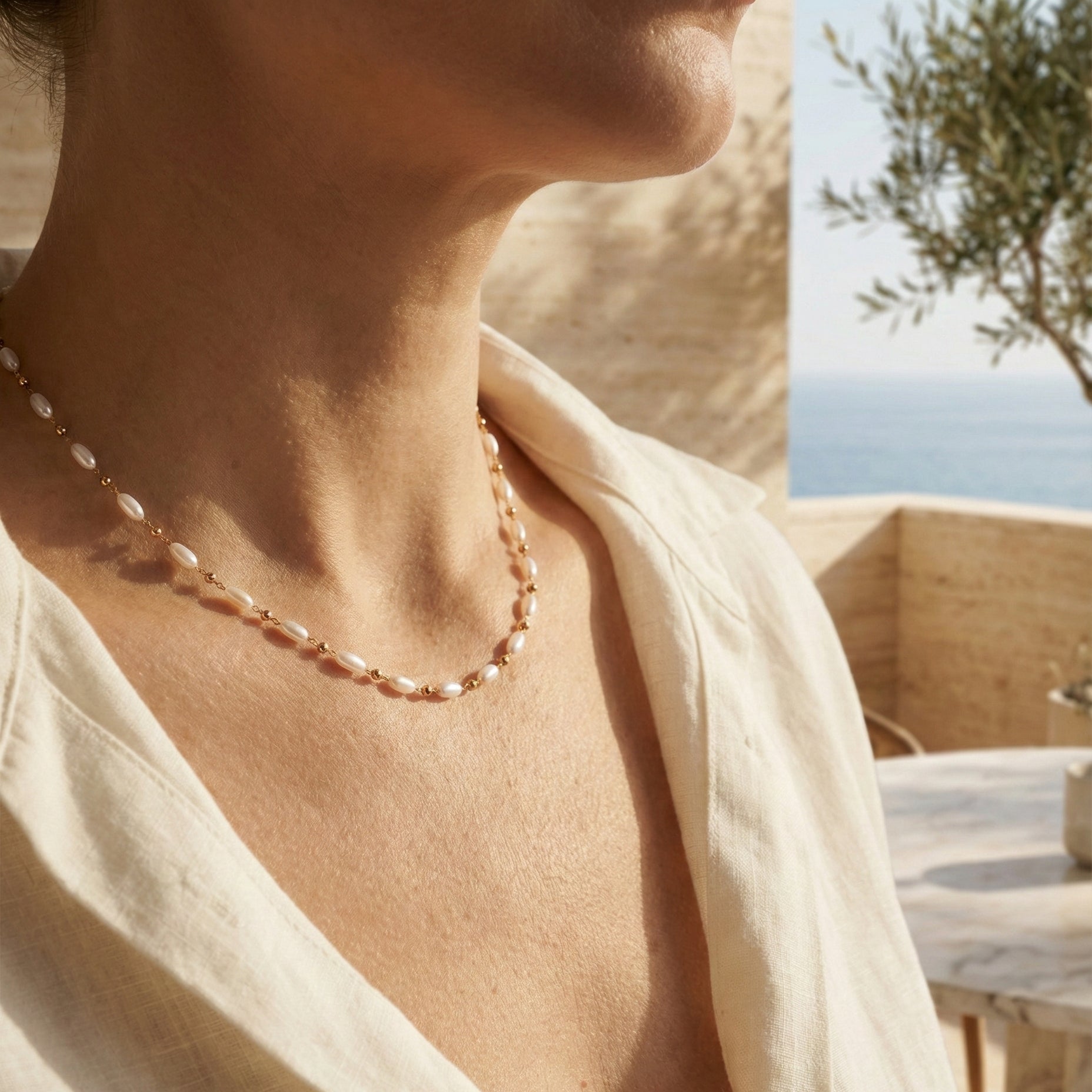 Inspired by effortless elegance, the Camila Rice Bead Dainty Pearl and Gold Necklace features a delicate chain accented with tiny pearl rice beads and a single luminous pearl at its center. Refined and understated, it adds a soft, polished glow to everyday styling while remaining perfectly suited for layering.